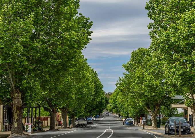 Mount Pleasant boasts a picturesque setting, with rolling hills, vineyards, and the majestic Mount Lofty Ranges as a backdrop. The town itself is lined with beautiful plane trees, adding to its visual appeal.